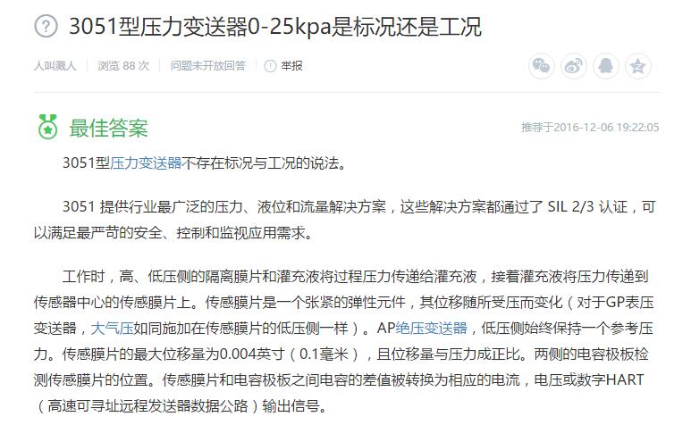 2、3051型壓力變送器0-25kpa是標況還是工況