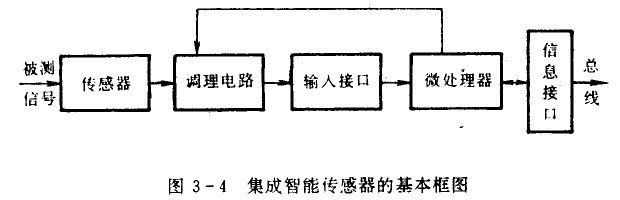 集成智能傳感器的基本組成框圖如圖3-4所示。它包括傳感器、補償和校正、調理電路、輸入接口、微處理器和信息接口等。其集成形式分單片集成式和混合集成式。初級智能的傳感器只包括圖中的部分環節.而高級智能傳感器則包括概述所有環節,成為超大規凌集成化的傳感器。本章按智能傳感器技術的發展分如下三種形式進行分析。